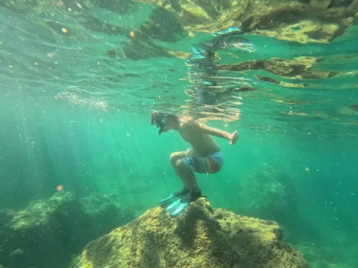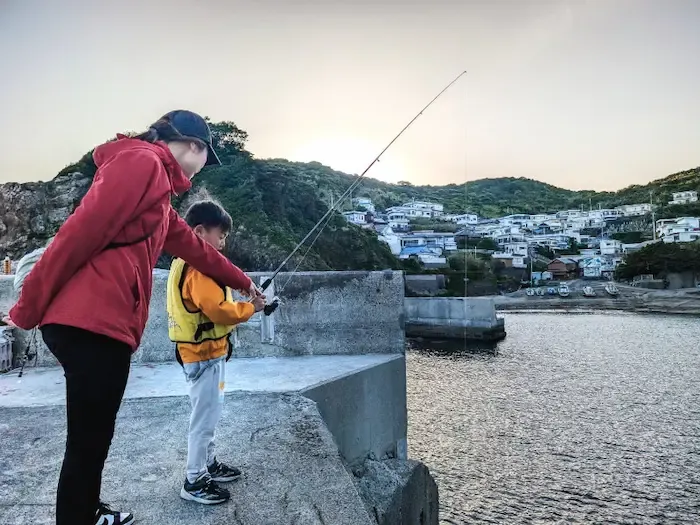 気が向いたら釣り竿を借りて波止場へ。 山側の小道を20分歩けば、秘密のビーチにも辿り着ける。